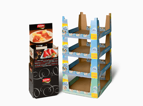 Présentoirs aux formes et aux dimensions variées, idéaux pour placer le produit dans le point de vente.